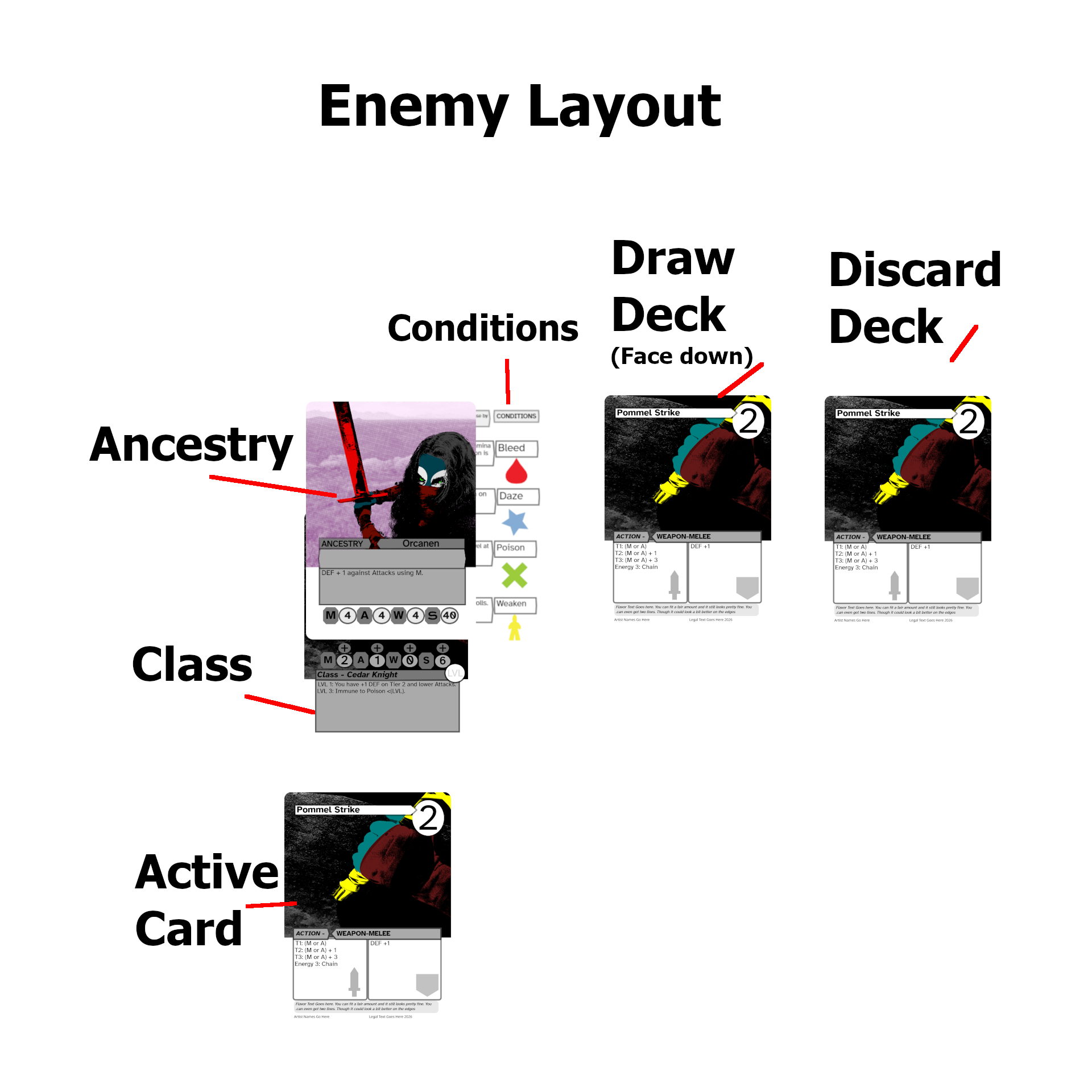 *Rules that refer to "The Enemy (verb).." means the human player performs those tasks for the Enemy.* *The Player and Enemy are separate gameplay entities but require the human playing the game to use and resolve Actions and abilities for both.*